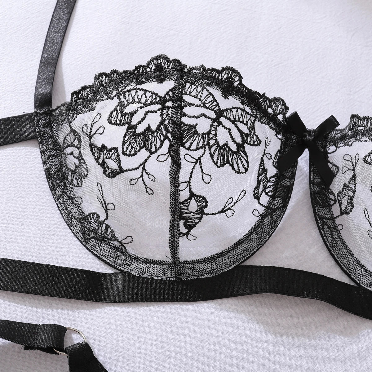 Luxury Black Embroidery Pure Desire Sexy Lingerie